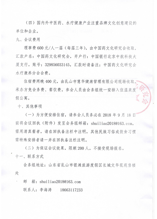 中国药文化研究会水疗康养分会参会人员、及永久办公地址